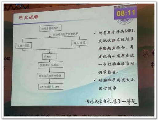 次日,吉林大學(xué)第一醫(yī)院邢英琦教授從研究背景、研究方法、研究結(jié)果、結(jié)論與展望四個方面同大家交流了當(dāng)前的腦血管研究病熱點——“偏頭痛與右向左分流-一項全國多中心研究結(jié)果與展望”。報告中,邢教授展示了與德力凱公司合作研發(fā)的智能化發(fā)泡實驗軟件和正在審查中的專利成果“一種發(fā)泡實驗檢查的數(shù)據(jù)處理方法及系統(tǒng)”。同時為了深入研究右向左分流、偏頭疼與腦白質(zhì)病變的關(guān)系,邢教授邀請各位醫(yī)學(xué)同仁參加吉林大學(xué)第一醫(yī)院倫理委員會批準(zhǔn)開展的中國偏頭痛患者腦白質(zhì)病變與右向左分流相關(guān)性研究。該研究為觀察性研究,從該研究中得到的信息將幫助醫(yī)生分析偏頭疼患者發(fā)生腦白質(zhì)病變的原因,為醫(yī)療相關(guān)部門制定偏頭疼患者預(yù)防及干預(yù)指南提供客觀依據(jù),獲得了在座專家的熱烈反響!