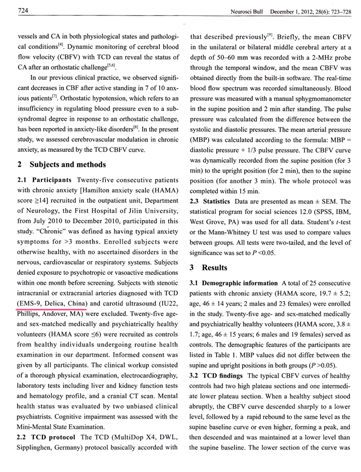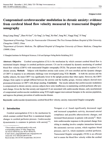 Compromised cerebrovascular modulation in chronic anxiety: evidence from cerebral blood flow velocity measured by transcranial Doppler sonography