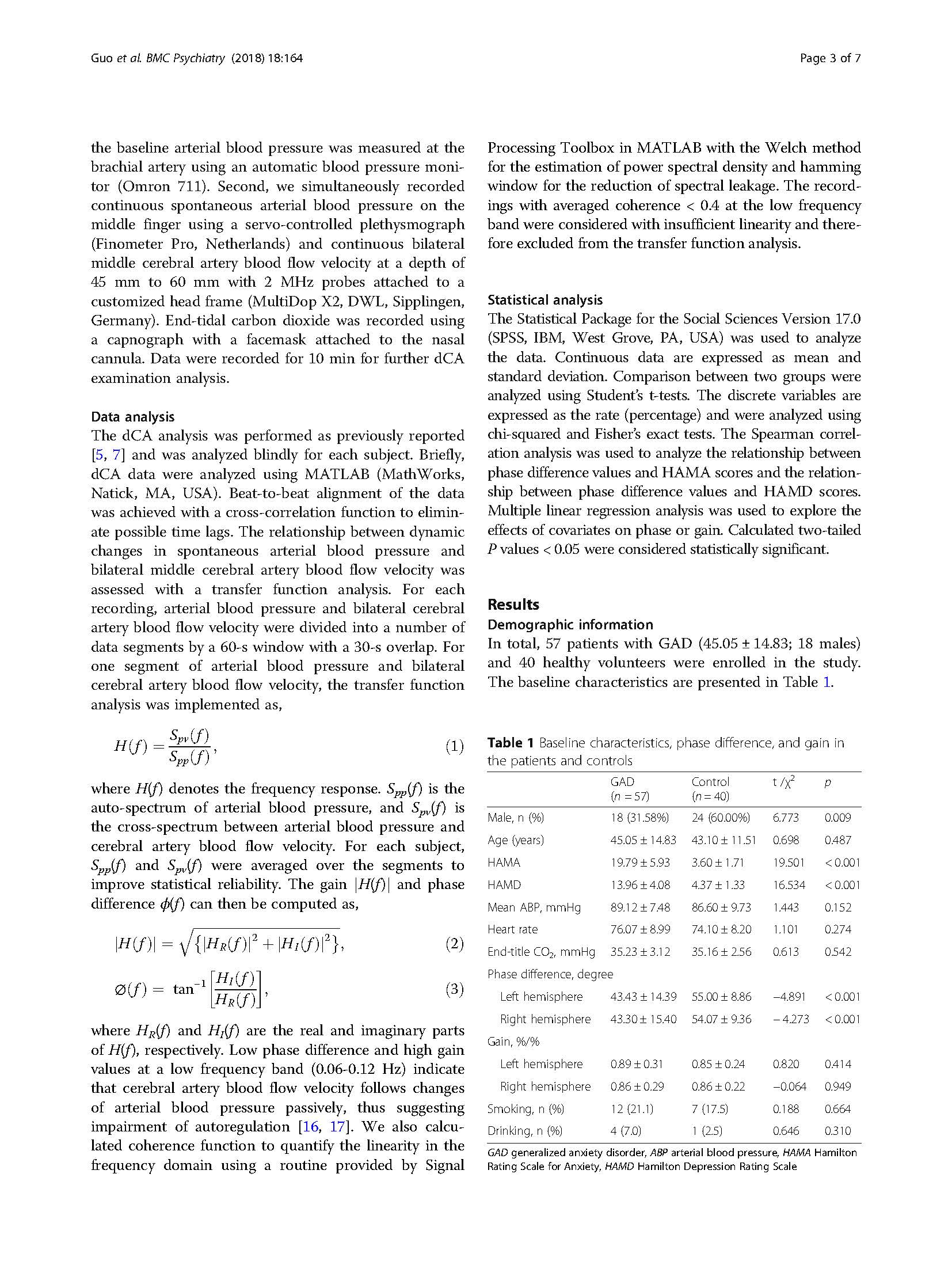 方法:被診斷為GAD的患者(年齡≥18歲)被納入本研究。招募醫(yī)學(xué)和心理健康志愿者作為對(duì)照。受試者接受漢密爾頓焦慮量表(HAMA)和17項(xiàng)漢密爾頓抑郁量表(HAMD)評(píng)估。每個(gè)受試者同時(shí)記錄無創(chuàng)連續(xù)動(dòng)脈血壓和雙側(cè)大腦中動(dòng)脈血流速度。