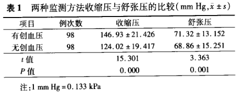 無創(chuàng)血壓收縮壓與舒張壓均較有創(chuàng)血壓高