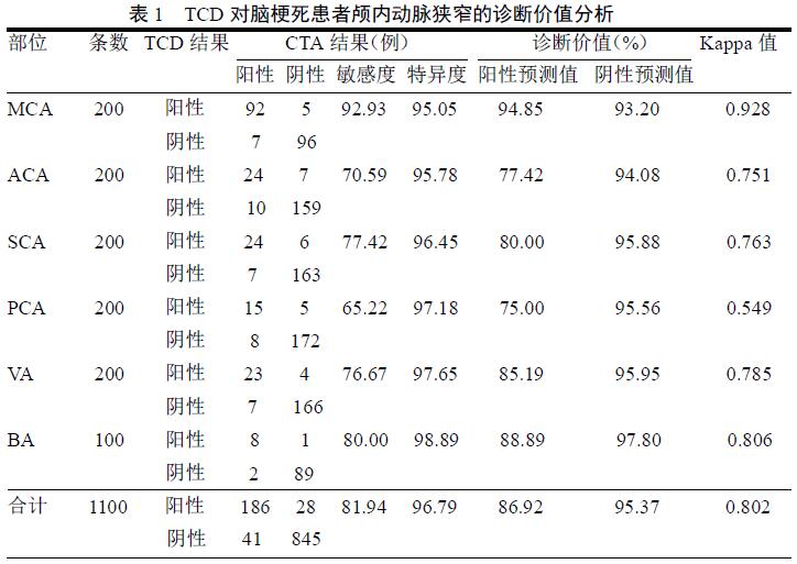 TCD 在腦梗死患者顱內(nèi)動(dòng)脈狹窄中的診斷價(jià)值