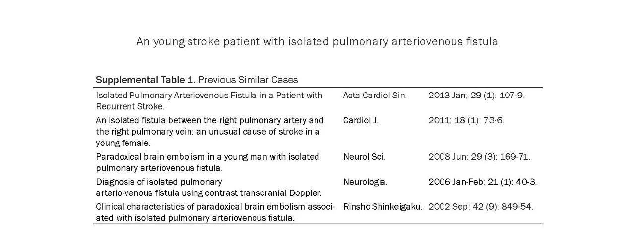 病例報道: 單發(fā)肺動靜脈竇:診斷青年卒中的一些見解