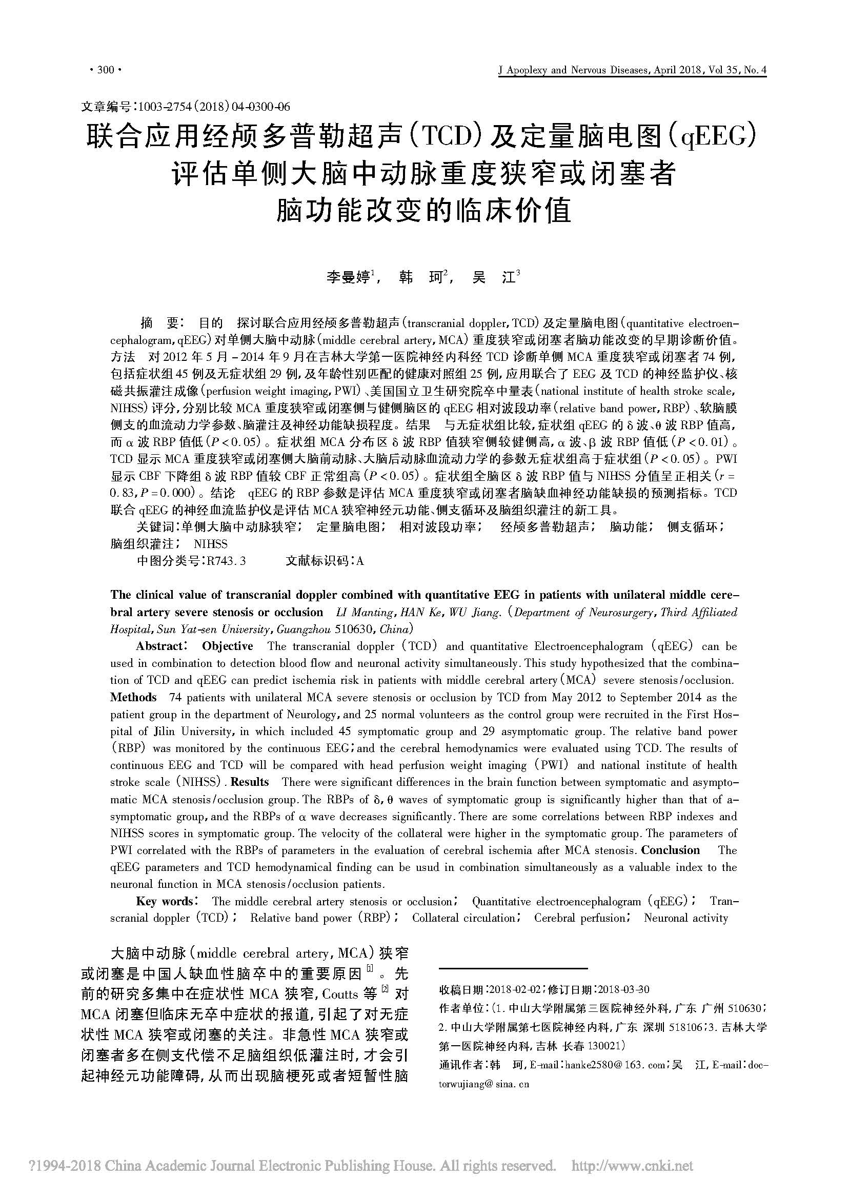 聯(lián)合應用經(jīng)顱多普勒超聲_TCD__省略_狹窄或閉塞者腦功能改變的臨床價值_李曼婷